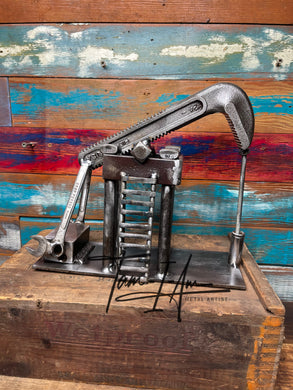 Oilfield Pump Jack - scrap metal desktop piece upcycled from retired and broken tools