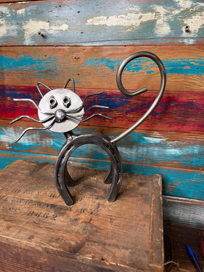 Horseshoe Cat repurposed art piece