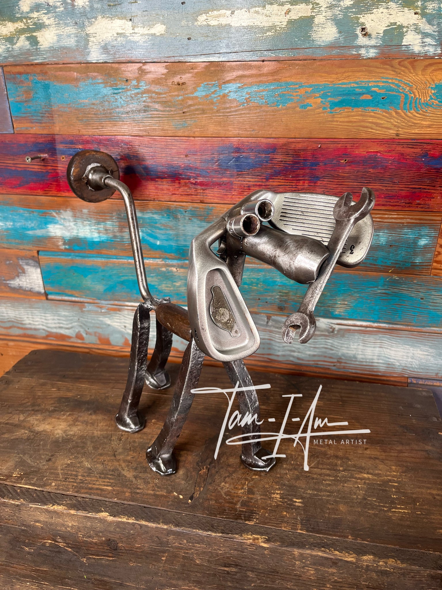 Junkyard Dog repurposed reclaimed metals art piece